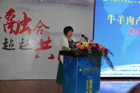 農牧業(yè)廳產(chǎn)業(yè)化處副處長(cháng)郟金梅在牛羊肉產(chǎn)業(yè)發(fā)展高峰論壇上作講座