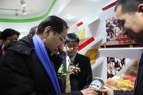 王玉明副主席參觀(guān)乳產(chǎn)品展區并觀(guān)看農畜產(chǎn)品追溯系統演示過(guò)程