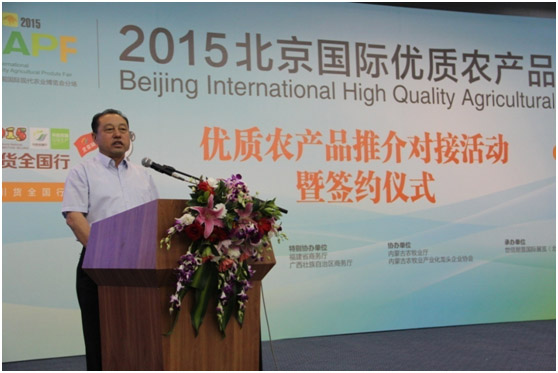 在優(yōu)質(zhì)農產(chǎn)品推介對接活動(dòng)暨簽約儀式上,內蒙古農牧業(yè)產(chǎn)業(yè)化龍頭企業(yè)協(xié)會(huì )執行會(huì )長(cháng)林永亮向與會(huì )人員介紹了內蒙古獨特的地域文化及內蒙古優(yōu)質(zhì)綠色農畜產(chǎn)品,林會(huì )長(cháng)指出,得天獨厚的資源優(yōu)勢孕育了內蒙古優(yōu)質(zhì)綠色無(wú)污染的農畜產(chǎn)品,內蒙古優(yōu)質(zhì)無(wú)污染的農畜產(chǎn)品進(jìn)駐北京精品館,必將為北京市民帶來(lái)純正的來(lái)自?xún)让晒糯蟛菰拿牢?。林?huì )長(cháng)表示,本次會(huì )議的主要目的就是帶領(lǐng)內蒙古優(yōu)秀農牧業(yè)產(chǎn)業(yè)化龍頭企業(yè),形成聯(lián)合艦隊,打組合拳,打造內蒙古的品牌,讓北京市民深入的認知和了解內蒙古的產(chǎn)品。會(huì )上,林會(huì )長(cháng)還邀請與會(huì )人員參加包頭國際牛羊肉大會(huì )和內蒙古第三屆綠博會(huì )。林會(huì )長(cháng)講話(huà)后,隨即就有沃爾瑪等大型商超和采購商與他聯(lián)系對接。