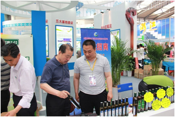 內蒙古農牧業(yè)廳產(chǎn)業(yè)化處處長(cháng)王補在與協(xié)會(huì )執行會(huì )長(cháng)林永亮參觀(guān)展位