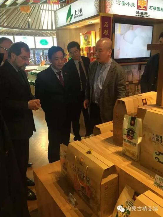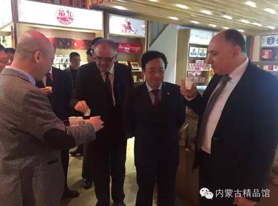 期間屈冬玉副部長(cháng)與中東歐國家駐華使館大使、外交部和質(zhì)檢總局等代表參觀(guān)內蒙古精品館。