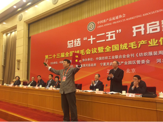 中國紡織工業(yè)聯(lián)合會(huì )副會(huì )長(cháng)、流通分會(huì )會(huì )長(cháng)夏令敏,中國畜產(chǎn)品流通協(xié)會(huì )會(huì )長(cháng)潘種樹(shù),中華全國供銷(xiāo)合作總社社團管理部部長(cháng)孔培聰,《紡織服裝周刊》雜志社社長(cháng)錢(qián)晉、北京大學(xué)中國信用研究中心常務(wù)副主任胡晟盛,中國畜產(chǎn)品流通協(xié)會(huì )常務(wù)副會(huì )長(cháng)倪靜參加會(huì )議,內蒙古自治區農牧業(yè)廳副廳長(cháng)云挨厚、產(chǎn)業(yè)化處處長(cháng)侯雁冰、副處長(cháng)郟金梅,內蒙古農牧業(yè)產(chǎn)業(yè)化龍頭企業(yè)協(xié)會(huì )執行會(huì )長(cháng)林永亮、副秘書(shū)長(cháng)劉俊青帶領(lǐng)我區羊絨企業(yè)應邀出席會(huì )議,共同總結行業(yè)“十二五”的經(jīng)驗,探討“十三五”行業(yè)持續穩定的發(fā)展之路。