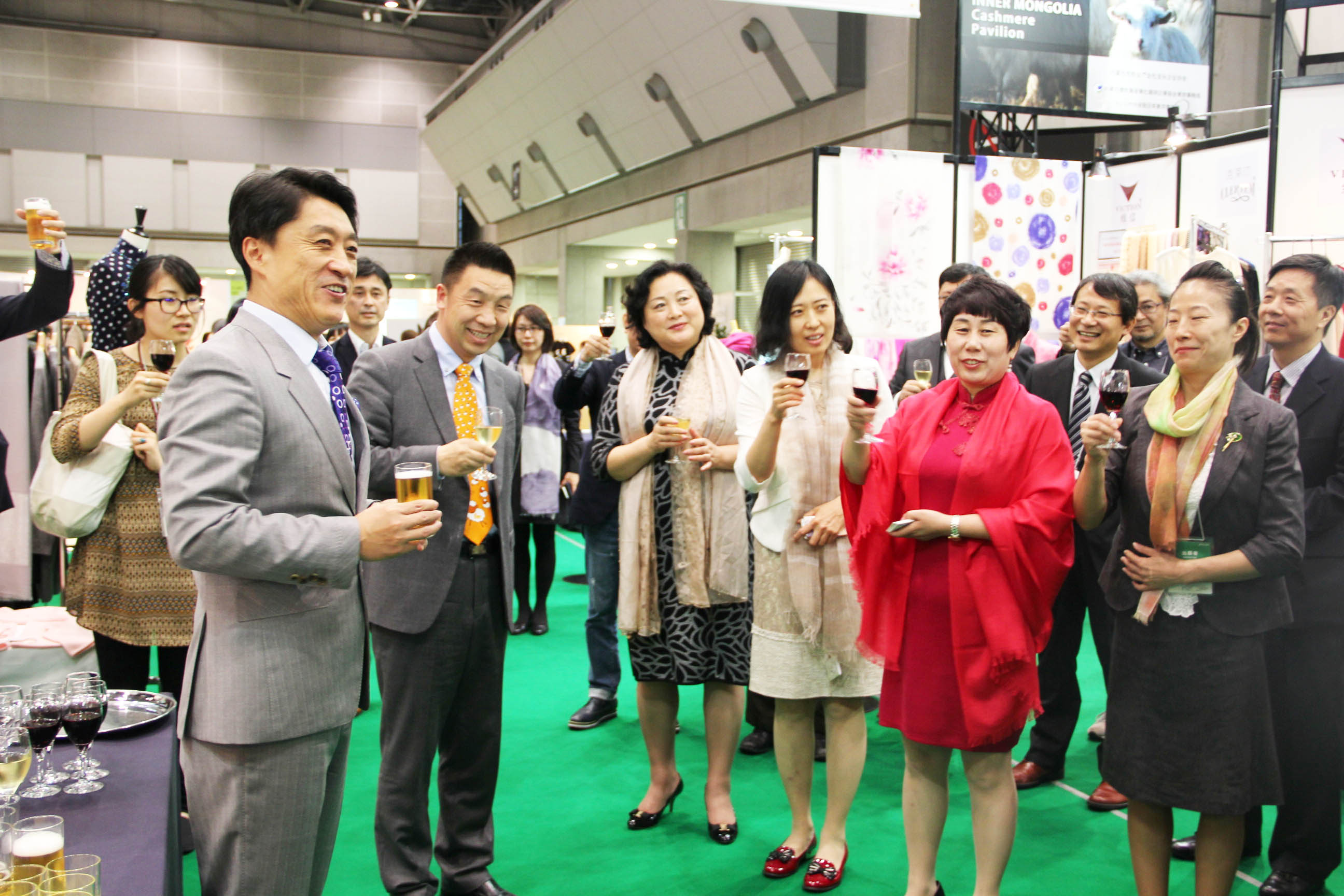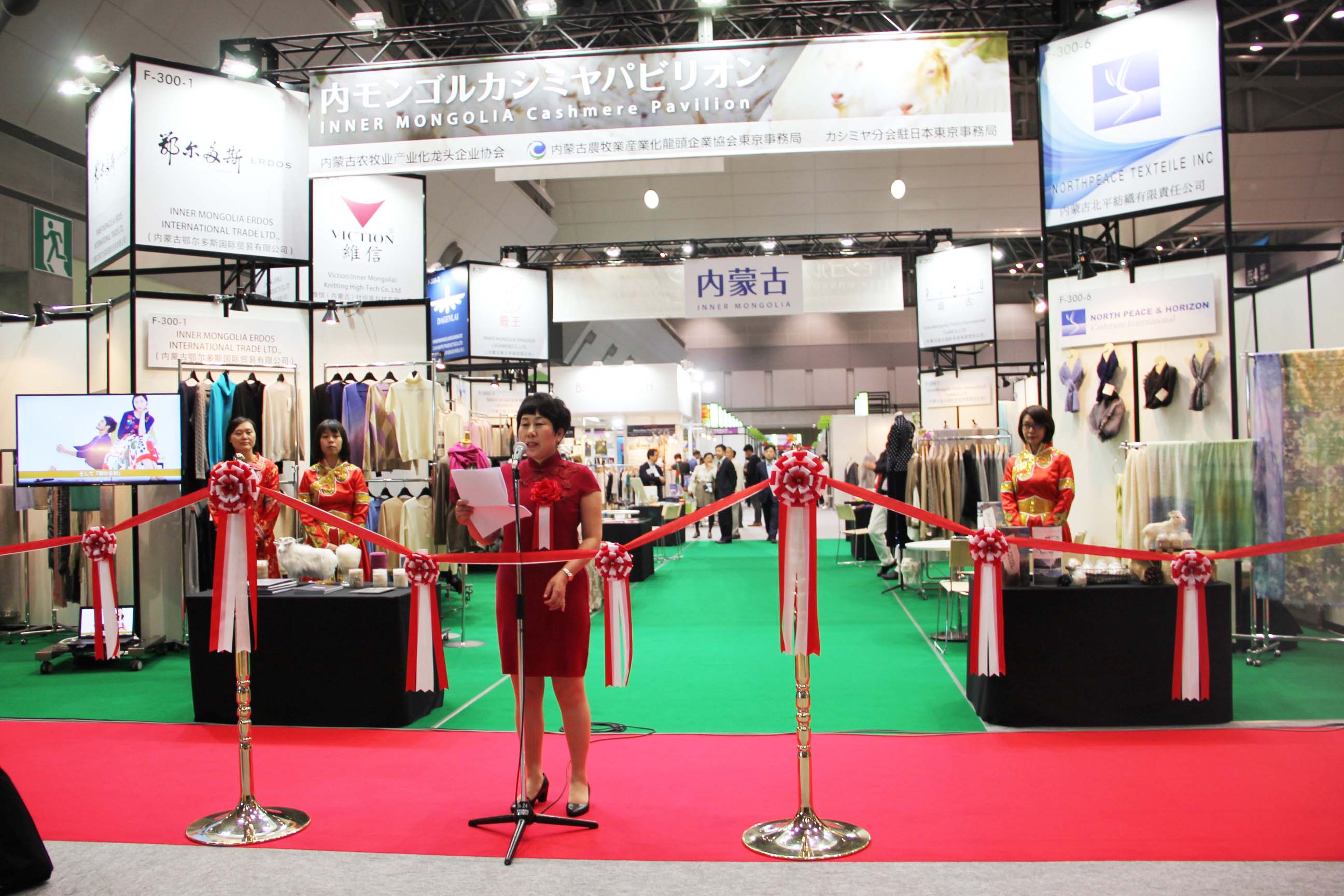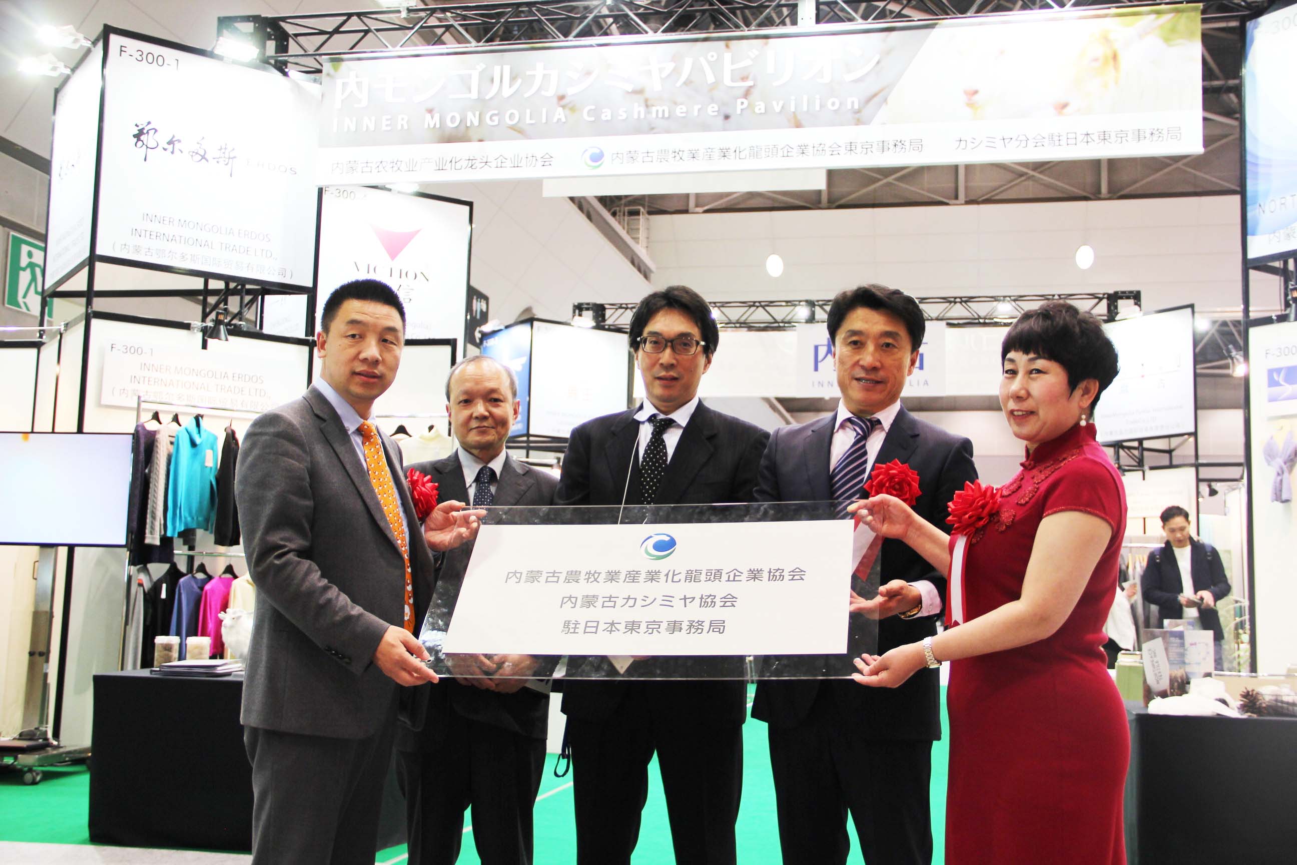 2016426日上午11時(shí),在內蒙古羊絨展區前,舉行了盛大的開(kāi)業(yè)剪彩儀式,內蒙古自治農牧業(yè)廳產(chǎn)業(yè)化處副處長(cháng)郟金梅、內蒙古農牧產(chǎn)業(yè)化龍頭企業(yè)協(xié)會(huì )會(huì )長(cháng)閆樹(shù)春、內蒙古農牧產(chǎn)業(yè)化龍頭企業(yè)協(xié)會(huì )羊絨產(chǎn)業(yè)分會(huì )會(huì )長(cháng)王風(fēng)之出席剪彩儀式,并分別就政府支持、協(xié)會(huì )服務(wù)和企業(yè)自律發(fā)展等幾方面做了精彩致辭。郟金梅副處長(cháng)表示,希望通過(guò)此次活動(dòng),使得社會(huì )各界代表能夠贏(yíng)得機遇、拓展空間,取得豐碩的成果,同時(shí)真誠盼望各方來(lái)賓、新老朋友能夠進(jìn)一步了解內蒙古羊絨,認識內蒙古羊絨,并以此為契機,加強內蒙古羊絨界與日本企業(yè)的合作,攜手發(fā)展,實(shí)現共贏(yíng),共創(chuàng )輝煌。閆樹(shù)春會(huì )長(cháng)在致辭中講到,我們此行不僅是要展示內蒙古羊絨原料優(yōu)勢地位和行業(yè)加工的專(zhuān)業(yè)性,更希望能充分利用各個(gè)平臺廣泛交流,探討合作途徑的契合點(diǎn),推動(dòng)兩國羊絨行業(yè)多方共贏(yíng),共同提升全球市場(chǎng)對羊絨產(chǎn)品的認知度,希望我們的羊絨企業(yè)能團結一致,實(shí)現羊絨產(chǎn)業(yè)的可持續發(fā)展。羊絨產(chǎn)業(yè)分會(huì )會(huì )長(cháng)王風(fēng)之在致辭中表示,通過(guò)內蒙古農牧業(yè)產(chǎn)業(yè)化龍頭企業(yè)協(xié)會(huì )羊絨分會(huì )的平臺,我們勢必會(huì )在培育超細超長(cháng)型產(chǎn)絨山羊、提升優(yōu)質(zhì)種群的規模、建立行業(yè)質(zhì)量標準和抱團發(fā)展,積極進(jìn)行海外市場(chǎng)渠道、品牌、投資等多方面取得突破性進(jìn)展,致力于將中國內蒙古羊絨打造成為全球性的產(chǎn)業(yè)品牌。
