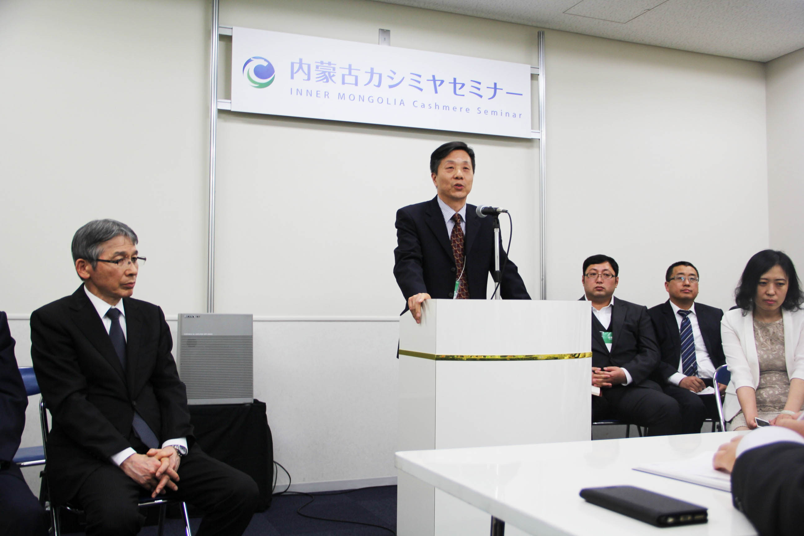 2016427日下午3時(shí),在展會(huì )會(huì )議室如期舉辦了“內蒙古羊絨國際發(fā)展論壇”,論壇由冀北平主任主持,郟金梅副處長(cháng)、閆樹(shù)春會(huì )長(cháng)、劉俊青副秘書(shū)長(cháng)、內蒙古羊絨參展企業(yè)家代表及日本各大采購集團、商協(xié)會(huì )、新聞部門(mén)等主要負責人參加了論壇并作精彩致辭,并就雙方關(guān)心的話(huà)題進(jìn)行了深入交流與研討,特別是龍頭企業(yè)協(xié)會(huì )為內蒙古羊絨進(jìn)行標準評定與推薦,樹(shù)立高品質(zhì)羊絨形象,為市場(chǎng)提供采購依據等引起了國際市場(chǎng)的高度關(guān)注和認可,并期待能早日看到帶有協(xié)會(huì )證書(shū)和LOGO標志的優(yōu)質(zhì)山羊絨進(jìn)入日本及國際市場(chǎng)。