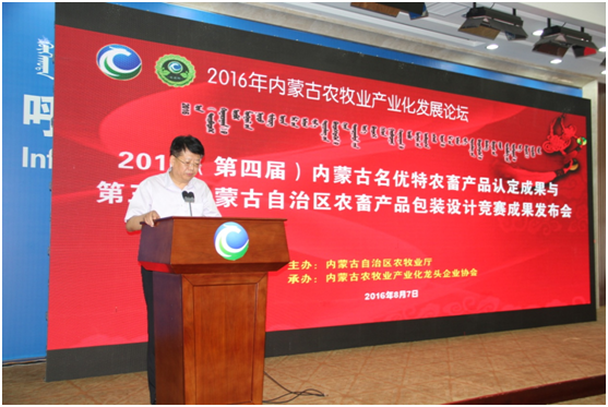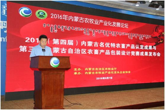 8月7日上午,第四屆內蒙古“名優(yōu)特”農畜產(chǎn)品認定及第三屆內蒙古自治區包裝設計競賽成果發(fā)布會(huì )及內蒙古農牧業(yè)產(chǎn)業(yè)化論壇在內蒙古國際會(huì )展中心盛大開(kāi)幕。內蒙古自治區農牧業(yè)廳廳長(cháng)郭健、副廳長(cháng)云挨厚、產(chǎn)業(yè)化處處長(cháng)侯雁冰、辦公室副主任黃偉,中國農業(yè)產(chǎn)業(yè)化龍頭企業(yè)協(xié)會(huì )綜合部副主任程篤學(xué)、內蒙古農牧業(yè)產(chǎn)業(yè)化龍頭企業(yè)協(xié)會(huì )會(huì )長(cháng)閆樹(shù)春,內蒙古農牧業(yè)產(chǎn)業(yè)化龍頭企業(yè)協(xié)會(huì )執行會(huì )長(cháng)兼秘書(shū)長(cháng)林永亮,各盟市農牧業(yè)局(產(chǎn)業(yè)化辦公室)負責人,精品館負責人,內蒙古農牧業(yè)產(chǎn)業(yè)化龍頭企業(yè)負責人,各參展企業(yè)負責人及包裝名優(yōu)特獲獎企業(yè)負責人,協(xié)會(huì )辦事處負責人、會(huì )員單位等200余人出席會(huì )議,自治區農牧業(yè)廳產(chǎn)業(yè)化處處長(cháng)侯雁冰主持會(huì )議。本次會(huì )議特別邀請到中國農業(yè)科學(xué)院農產(chǎn)品加工研究所所長(cháng)、黨委副書(shū)記戴小楓做主旨演講。