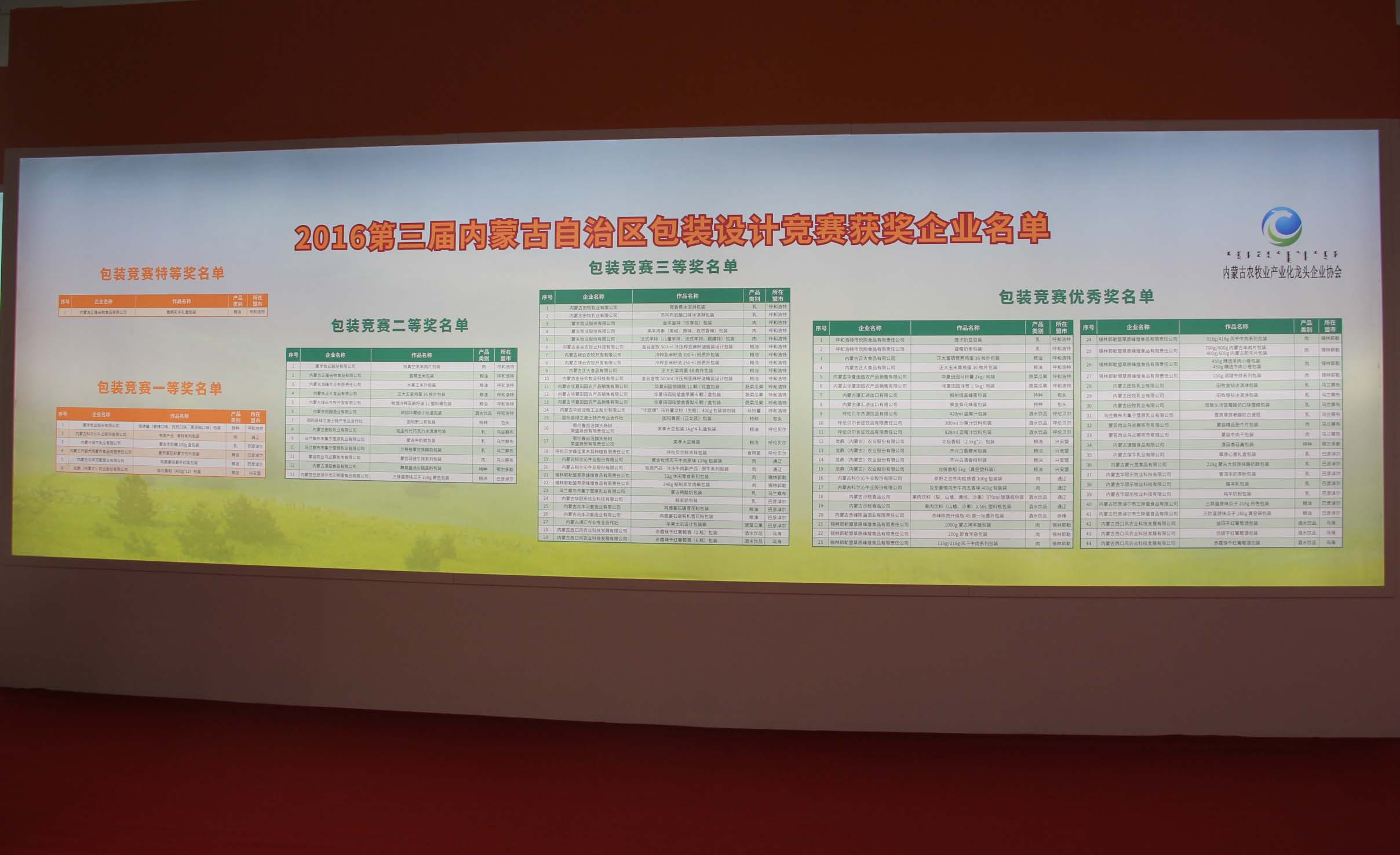 內蒙古農牧業(yè)產(chǎn)業(yè)化龍頭企業(yè)協(xié)會(huì )承辦的包裝設計成果展示廳