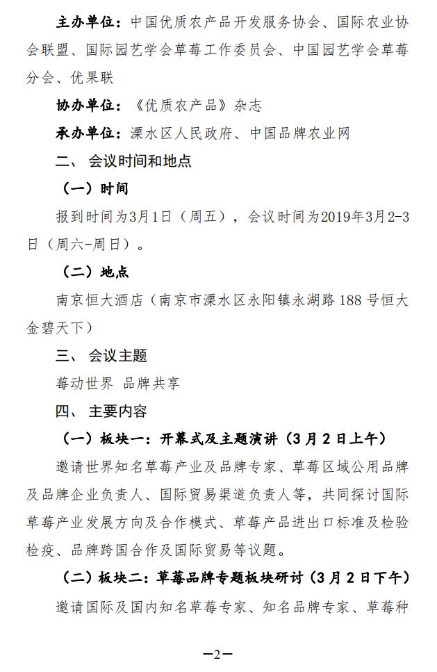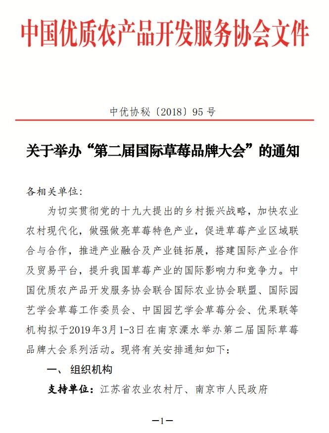標題:關(guān)于舉辦“第二屆國際草莓品牌大會(huì )”的通知