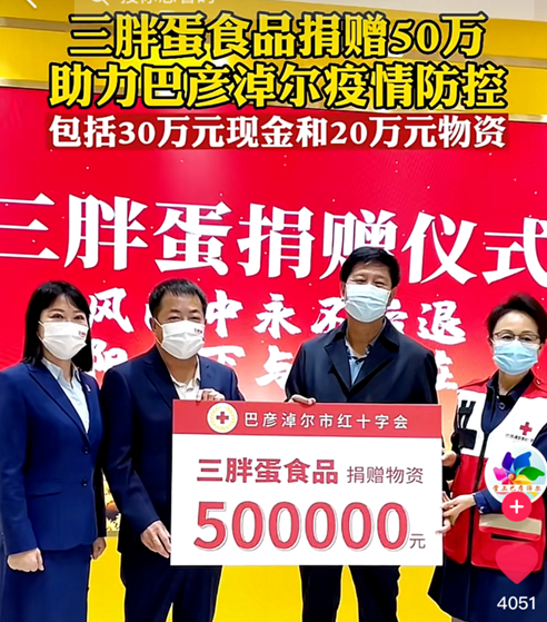 32、會(huì )員單位-內蒙古三胖蛋食品有限公司:三胖蛋再次向紅十字會(huì )捐贈抗疫資金及抗疫物資,積極配合政府,助力疫情防控工作,堅持盡自己所能為家鄉助力,為社會(huì )提供正能量,發(fā)揚民族企業(yè)的光和熱。