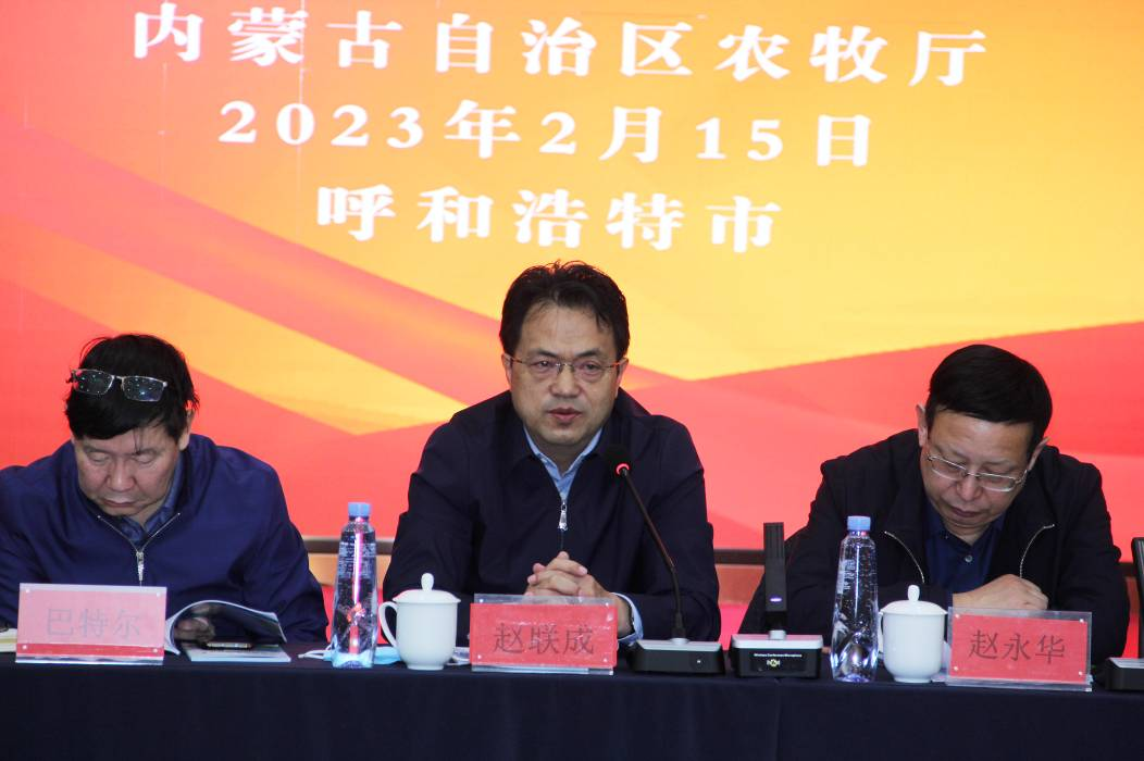 2月15日上午,由自治區農牧廳主辦,內蒙古農牧業(yè)產(chǎn)業(yè)化龍頭企業(yè)協(xié)會(huì )承辦的內蒙古農牧業(yè)招商引資對接會(huì )在呼和浩特市香巴拉大酒店召開(kāi)。自治區農牧廳副廳長(cháng)、招商引資組組長(cháng)趙永華出席會(huì )議并講話(huà),自治區農牧廳總獸醫師趙聯(lián)成主持會(huì )議。農牧廳市場(chǎng)與對外合作處處長(cháng)侯雁冰和相關(guān)處室、自治區農牧業(yè)技術(shù)推廣中心負責同志,8家異地商協(xié)會(huì )和投資企業(yè)負責人、12家區內重點(diǎn)龍頭企業(yè)負責人等45人參加會(huì )議,各盟市農牧局相關(guān)負責同志108人通過(guò)視頻形式參加會(huì )議。內蒙古農牧業(yè)產(chǎn)業(yè)化龍頭企業(yè)協(xié)會(huì )執行會(huì )長(cháng)林永亮參加會(huì )議并發(fā)言。