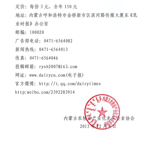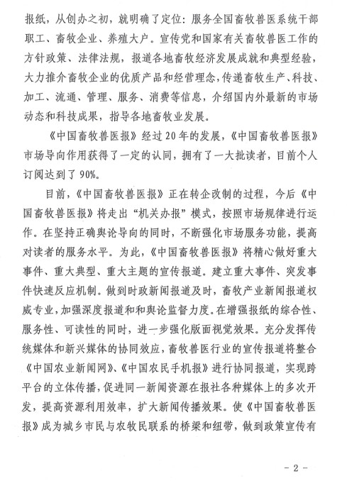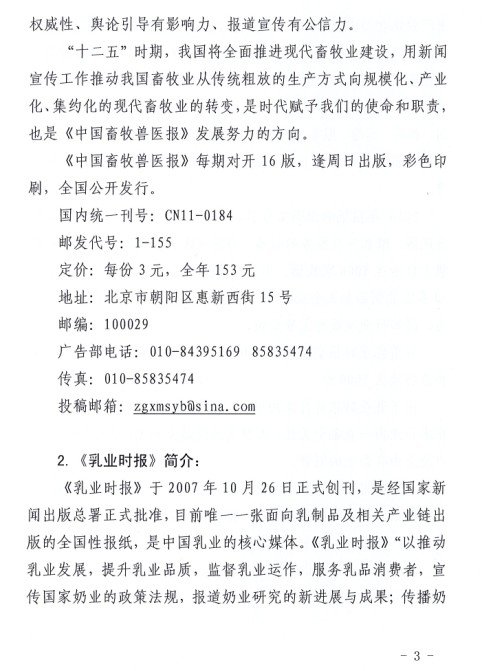 關(guān)于建議會(huì )員單位訂購《中國畜牧獸醫報》、《乳產(chǎn)業(yè)時(shí)報》的通知