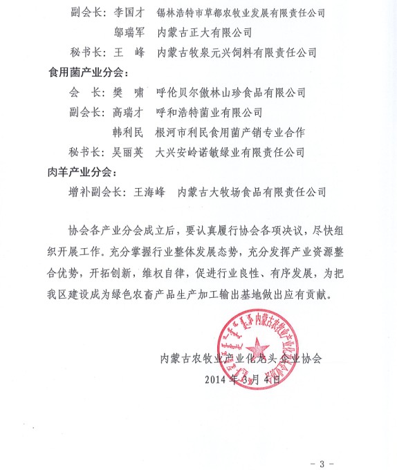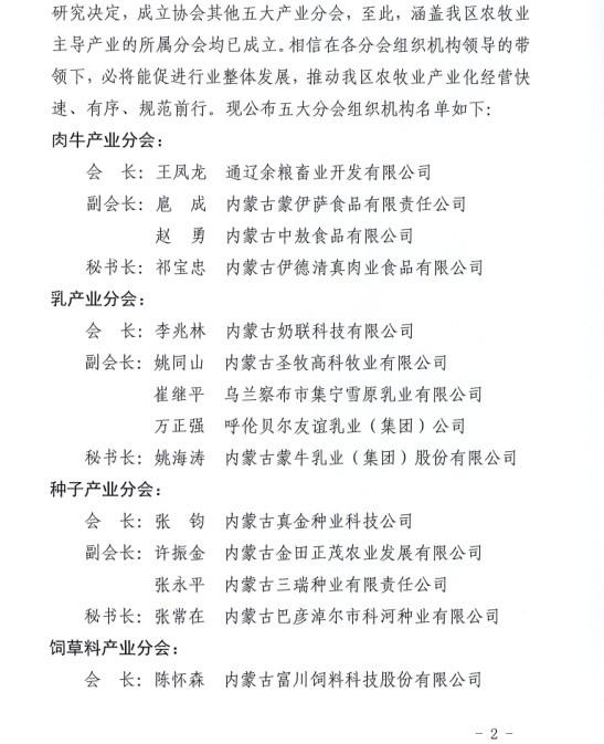 關(guān)于成立內蒙古農牧業(yè)產(chǎn)業(yè)化龍頭企業(yè)協(xié)會(huì )各大產(chǎn)業(yè)分會(huì )的通知