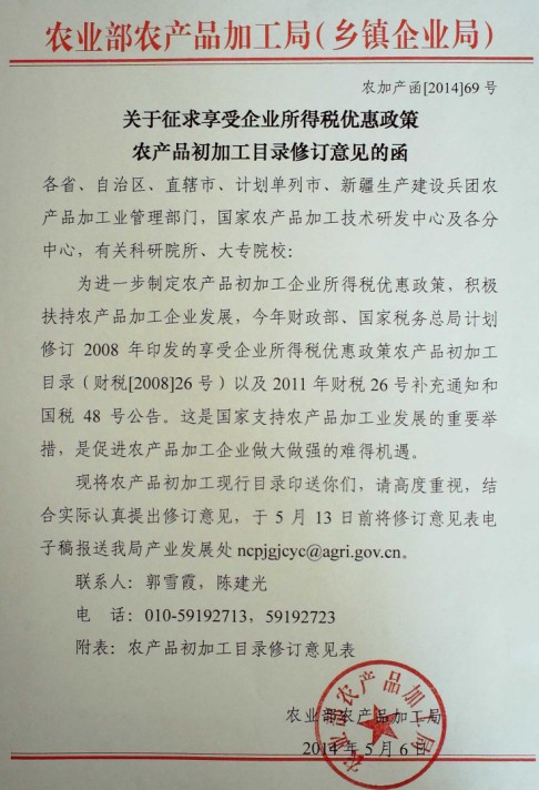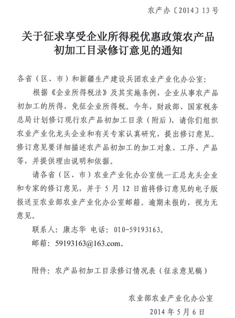 關(guān)于向會(huì )員單位征集農產(chǎn)品初加工目錄修訂意見(jiàn)的通知