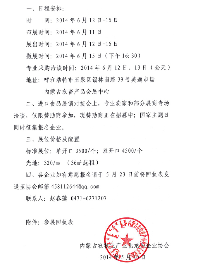 關(guān)于參加第一屆內蒙古國際食品貿易對接會(huì )的通知