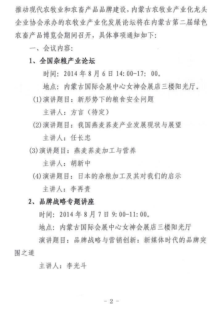 關(guān)于舉辦內蒙古農牧業(yè)產(chǎn)業(yè)化發(fā)展論壇的通知