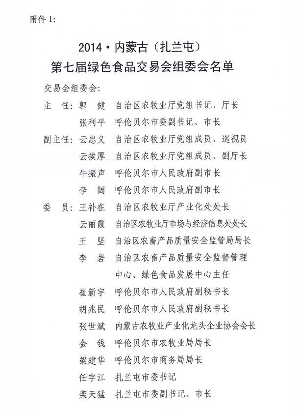 關(guān)于舉辦2014內蒙古(扎蘭屯)第七屆綠色食品交易會(huì )的通知