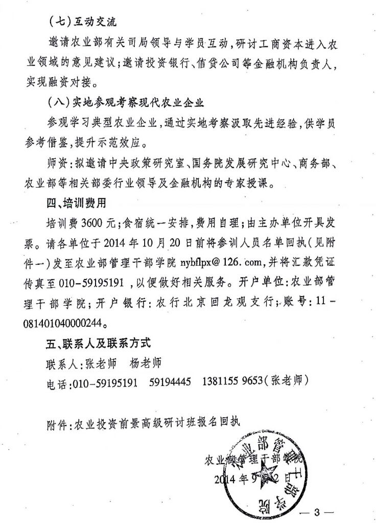 轉發(fā)“關(guān)于舉辦農業(yè)投資前景高級研討班的通知”