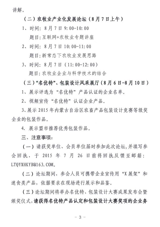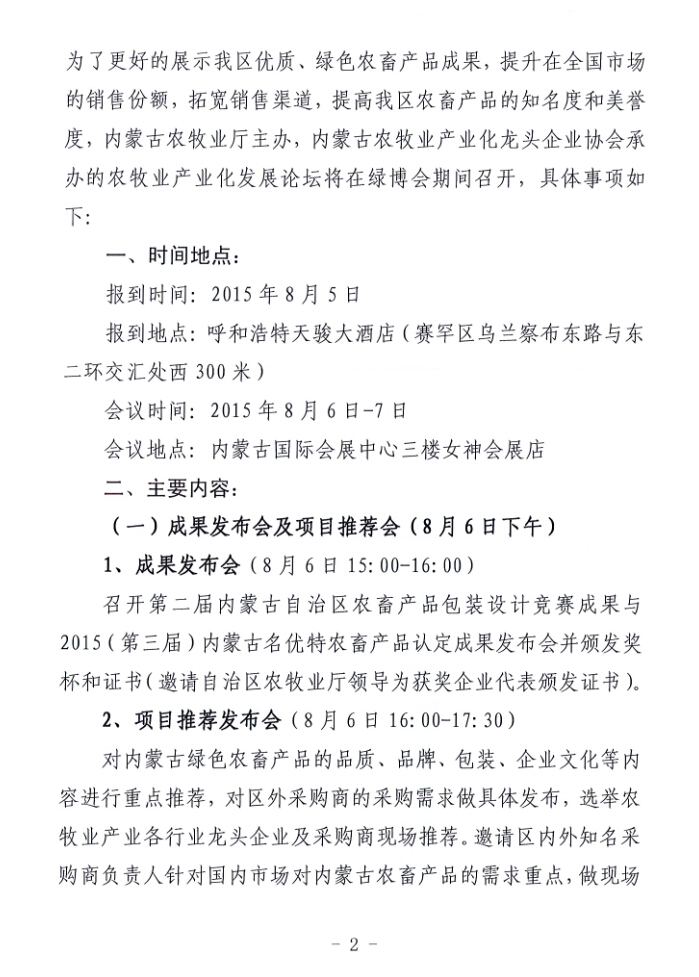 關(guān)于舉辦2015內蒙古農牧業(yè)產(chǎn)業(yè)化發(fā)展論壇的通知
