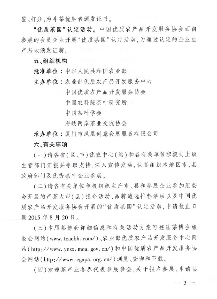 關(guān)于舉辦第三屆中國茶葉博覽會(huì )的通知