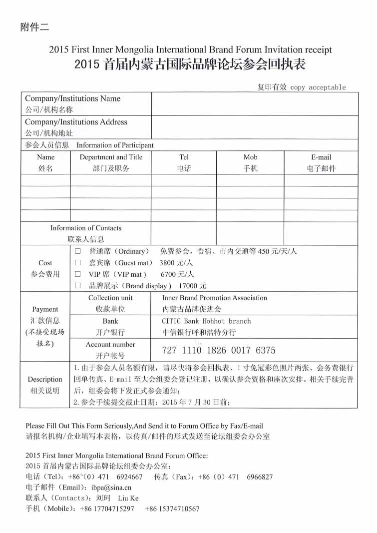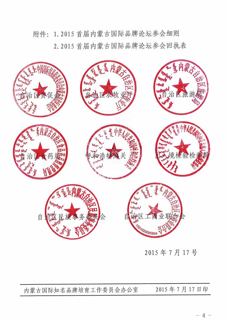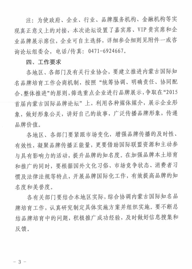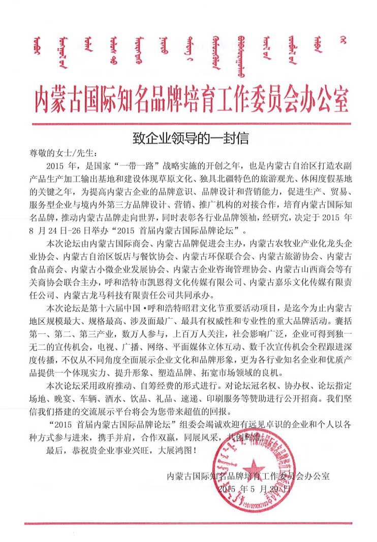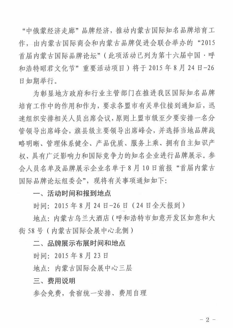 關(guān)于參加“2015首屆內蒙古國際品牌論壇”的通知