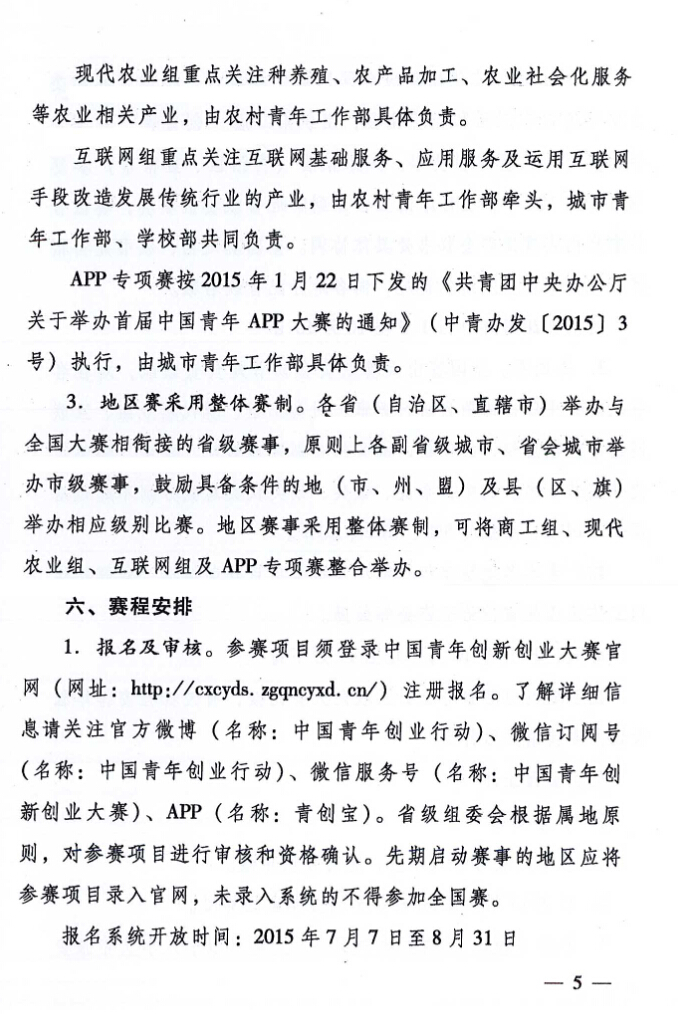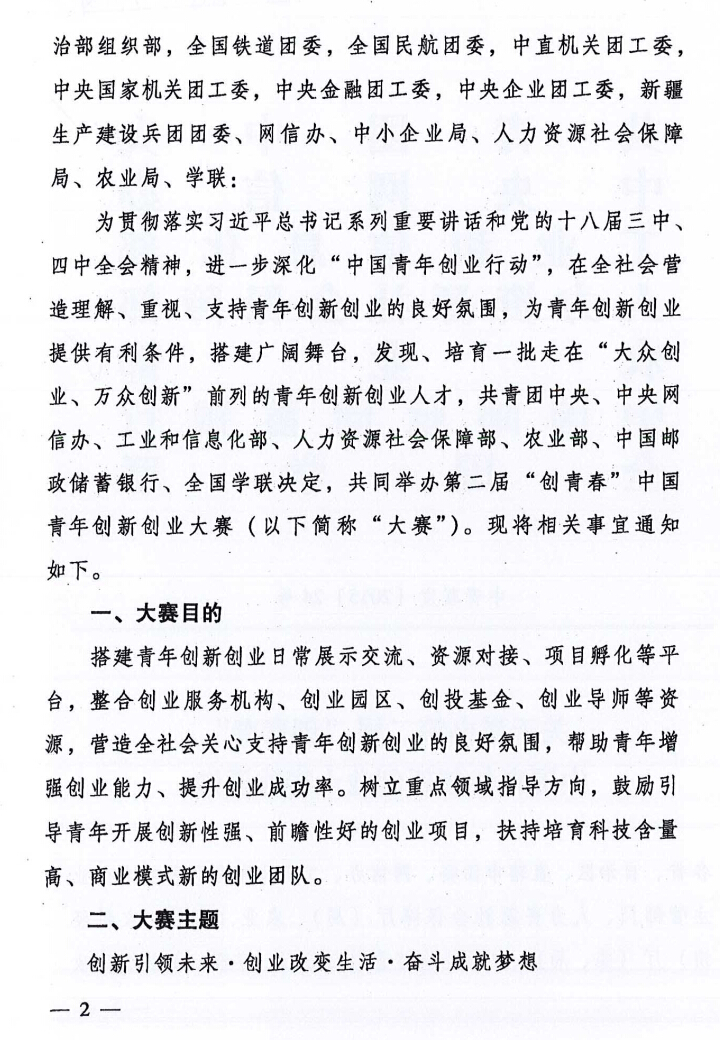 關(guān)于舉辦第二屆“創(chuàng )青春”中國青年創(chuàng )新創(chuàng )業(yè)大賽的通知