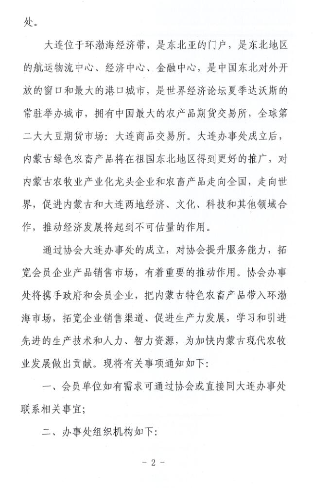 關(guān)于成立內蒙古農牧業(yè)產(chǎn)業(yè)化龍頭企業(yè)協(xié)會(huì )大連辦事處的通知