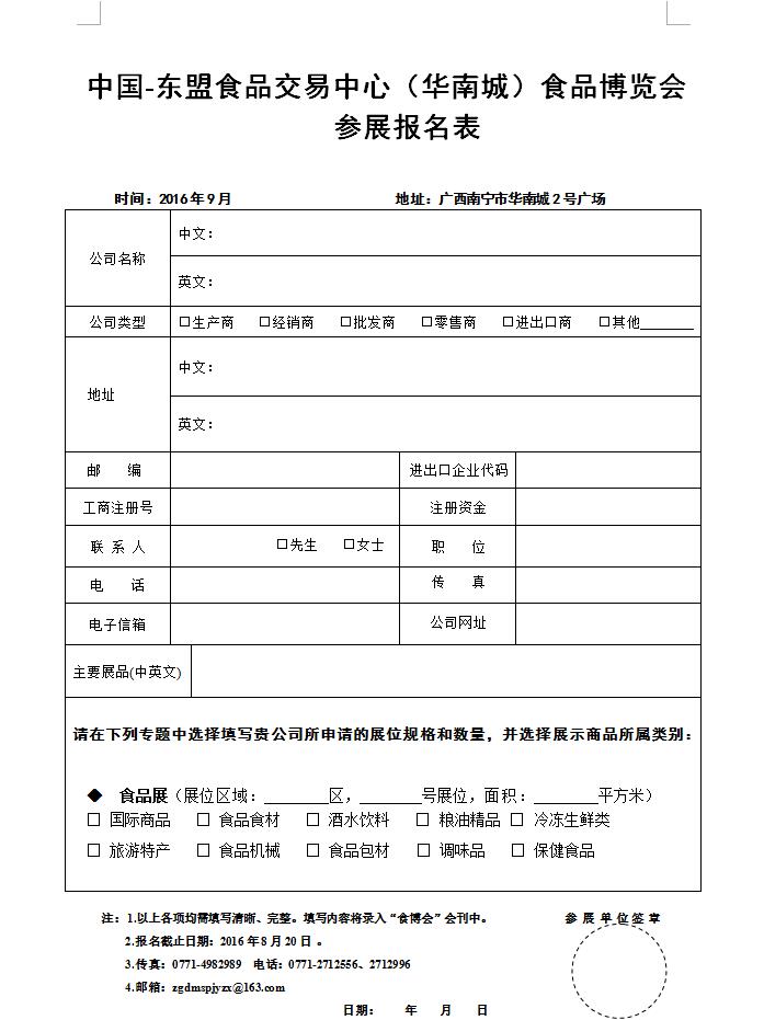 附件4.中國-東盟食品交易中心(華南城)食品博覽會(huì )報名表