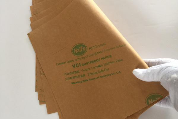 4、包裝過(guò)程---將含有緩蝕劑的面朝向金屬包裝,不覆膜防銹紙可作為金屬產(chǎn)品間墊層隔材使用,以免其他材質(zhì)阻隔材料含S、CL化學(xué)成分,影響防銹效果