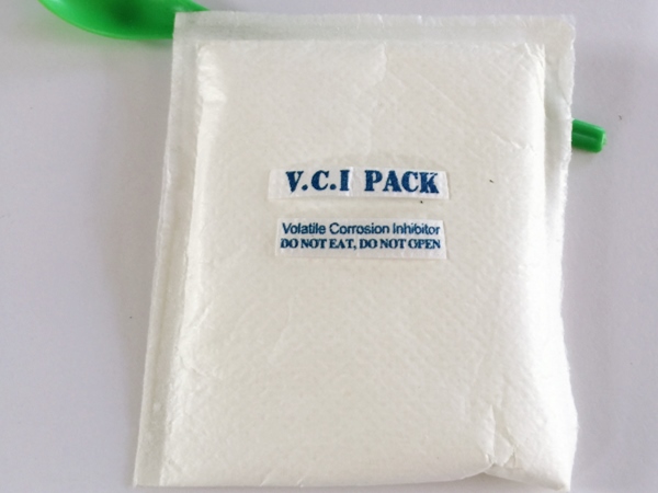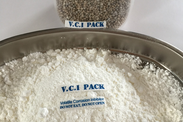 氣相防銹粉末多種特制的氣相緩蝕劑原料按一定配比均勻混合加工而成,具有水溶性,是一種新型的氣化性防銹材料。在密閉空間內(nèi),VCI經(jīng)氣化揮發(fā)到金屬的每個(gè)角落,吸附在金屬表面形成致密保護(hù)膜層從而起到防銹的作用