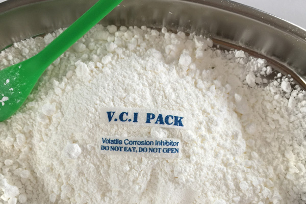 氣相防銹粉末多種特制的氣相緩蝕劑原料按一定配比均勻混合加工而成,具有水溶性,是一種新型的氣化性防銹材料。在密閉空間內(nèi),VCI經(jīng)氣化揮發(fā)到金屬的每個角落,吸附在金屬表面形成致密保護膜層從而起到防銹的作用