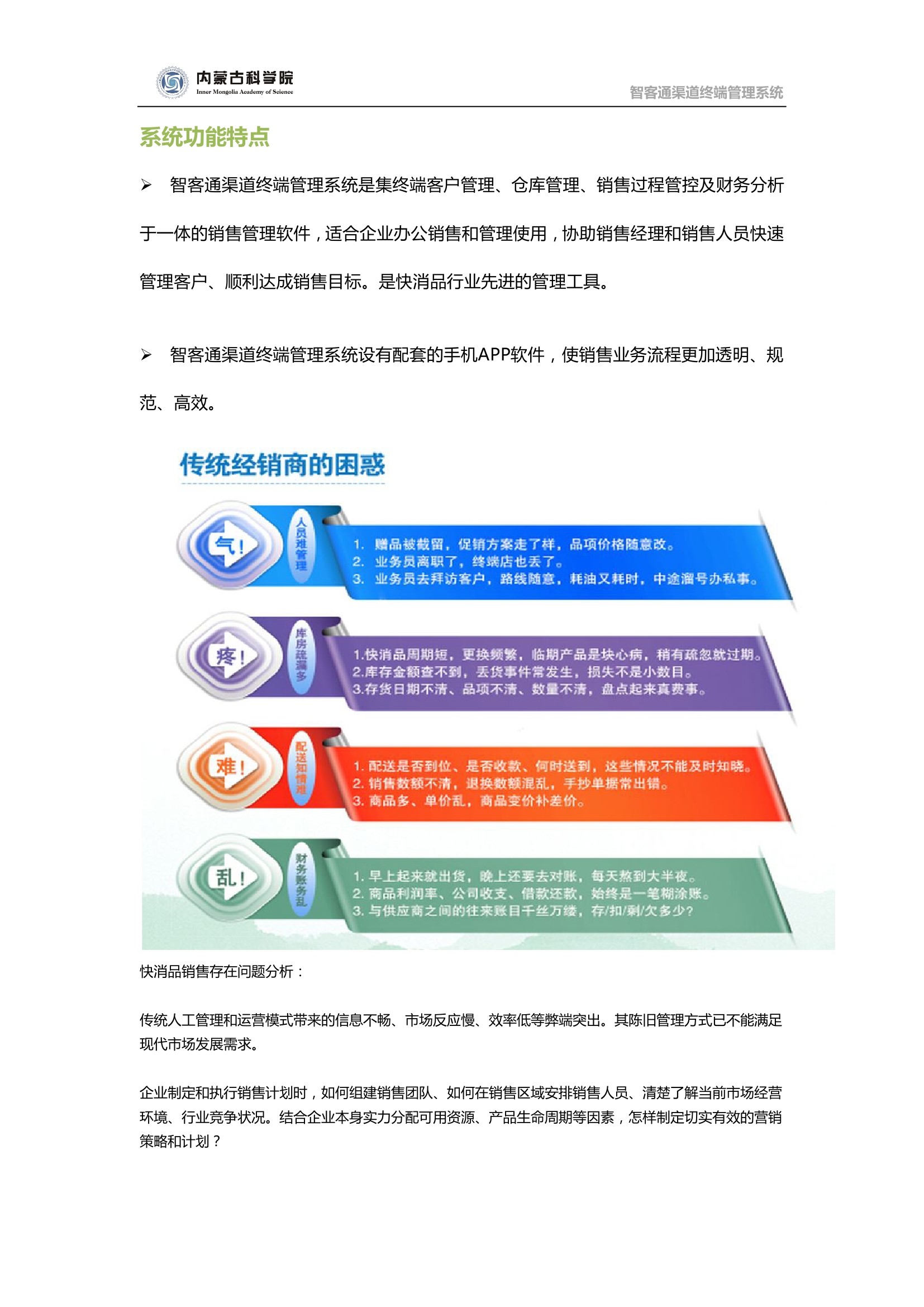 產(chǎn)品名稱(chēng):內蒙古科學(xué)院有限責任公司智客通渠道終端管理系統